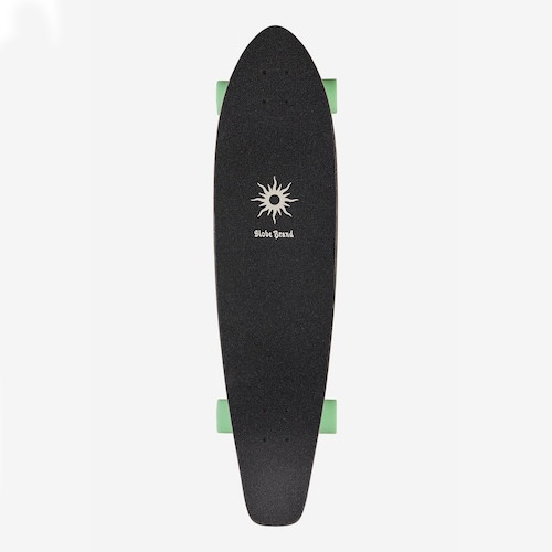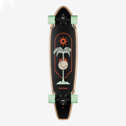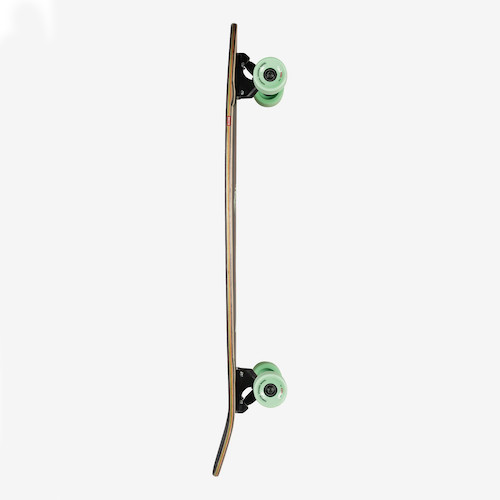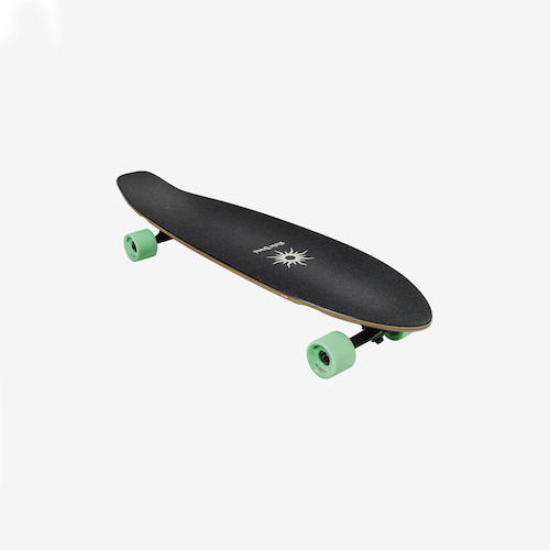 L’All-Time in colore Spkewered è disponibile nelle dimensioni 35,875″ x 9″ x 22,25″wb. Forma cruiser a passo lungo con kick tale. È un mellow concavo con kicktail realizzato in acero di roccia dura Resin-8. È dotato di trucks kingpin inverso inclinati da 150 mm e ruote 78a da 65 mm. Grip nero con stampa.