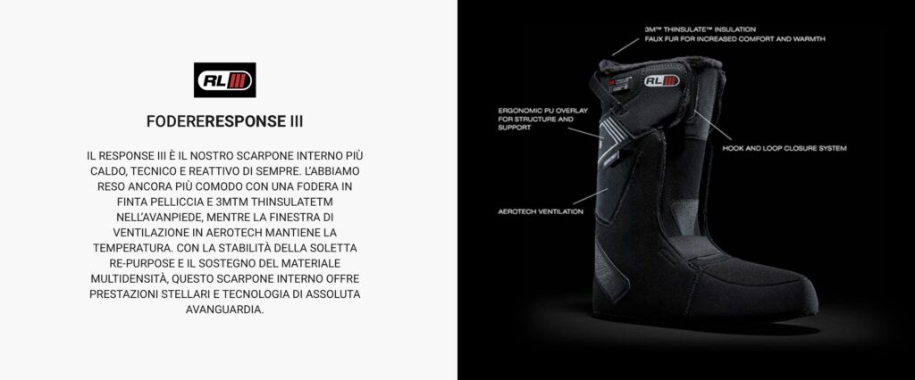 - Sistema di inserimento: Doppio BOA® Fit System con regolazione H4 e imbracatura interna per la caviglia